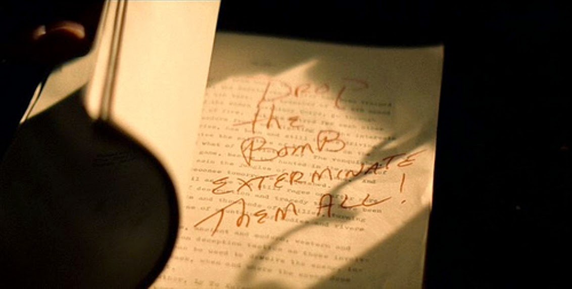 Ecco Walter Kurtz/Brando: "Drop the bomb. Exterminate them all". E Walter Kurtz/Conrad: "Exterminate all the brutes".
